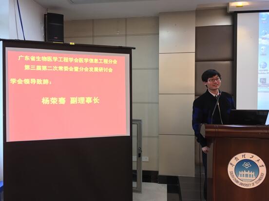 2017年1月13日,医学信息工程分会第三届第二次常委会暨分会发展研讨会在华南理工大学顺利召开。学会副理事长杨荣骞教授首先代表学会致辞,他简要回顾了分会的成长历程,感谢分会全体委员在2016年为分会各项工作付出的辛勤劳动,预祝分会在新的一年取得更大进步!