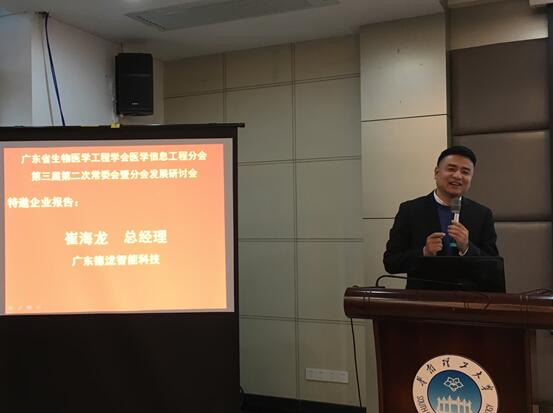 会议下半场是产学研交流与研讨,来自清华大学深圳研究生院的陈开全教授,围绕神经网络与机器人新进展的主题,介绍了神经网络的许多新技术及其在机器人领域的应用进展,其中他们团队研发的肠道微型机器人引起了专家们的浓厚兴趣和广泛关注;广州三得医疗科技有限公司、广东德泷智能科技有限公司以及广州稻铭营养健康咨询有限公司等三家特邀企业的总经理,分别就公司产品及技术、研究及开发项目、企业文化和发展优势等做了展示。与会专家们表示,医学信息工程是一个多学科交叉融合、既有医学临床又有工程技术的领域,产学研交流容易碰撞出火花和灵感,希望分会以后继续组织类似的活动。